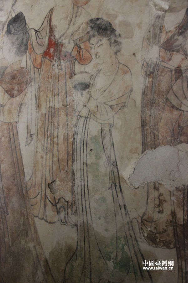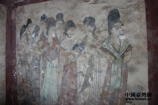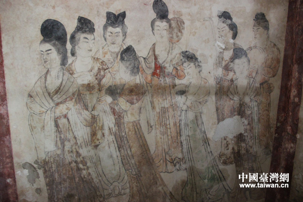 永泰公主墓內的宮女圖壁畫。(中國臺灣網 王文英攝)