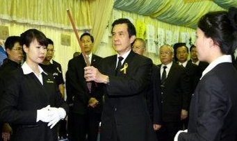 臺(tái)軍陸軍下士洪仲丘告別式4日上午在后里自宅舉行告別儀式,馬英九等政要及眾多民眾到場上香,場面哀戚。(圖片來自臺(tái)媒)