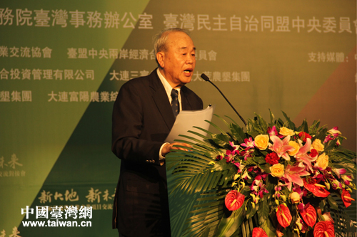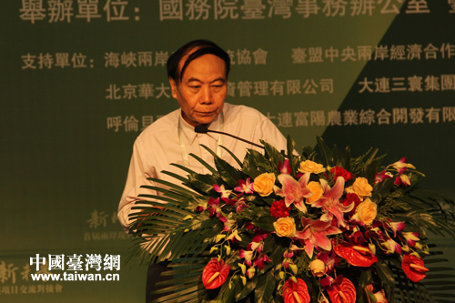 全球生物產(chǎn)物科技發(fā)展基金會董事長彭作奎發(fā)表題目為《結(jié)合兩岸發(fā)展優(yōu)勢,開創(chuàng)農(nóng)業(yè)合作新平臺》的專題演講。(中國臺灣網(wǎng) 王君飛 攝)