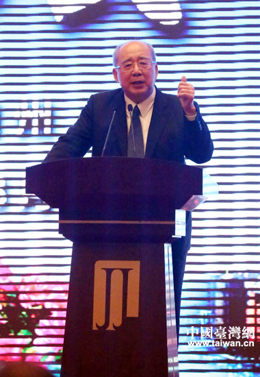 中國國民黨榮譽主席吳伯雄在第6屆海峽兩岸客家高峰論壇、第11屆贛臺經貿文化合作交流大會上致辭。(中國臺灣網 郜利敏 攝)
