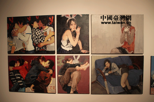 大陸畫家袁文彬作品“兔子兔子”之三(中國臺灣網(wǎng) 蕪?fù)?攝)