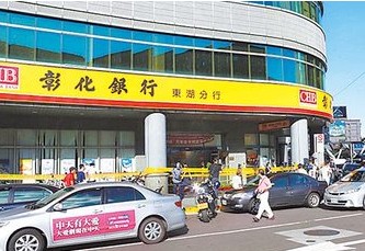 搶匪持槍進入彰化銀行北市東湖分行搶劫未果后逃逸。(圖片來自臺媒)
