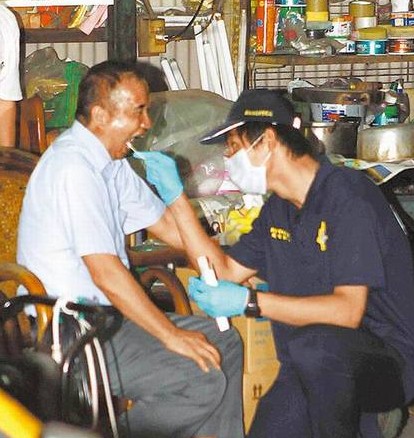 胡姓出租車司機回憶遭搶情形,仍心有余悸,圖為事后警方對他采證。(圖片來自臺媒)