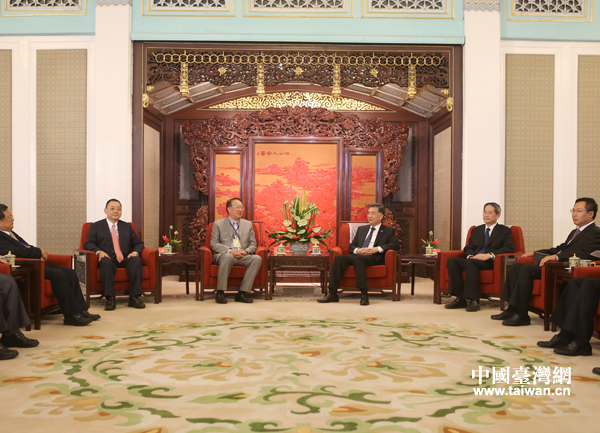 9月2日下午,中共中央政治局委員、國務院副總理汪洋在中南海紫光閣會見了由臺灣區電機電子工業同業公會理事長郭臺強率領的臺灣電電公會參訪團一行。 (中國臺灣網 田云鵬 攝)
