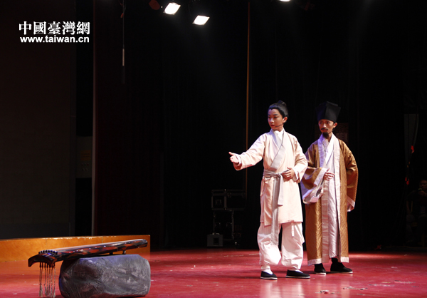 西城區中小學同學表演情景劇,展現了俞伯牙與鐘子期因琴聲結緣,以及伯牙絕琴的典故。(中國臺灣網 普燕 攝)