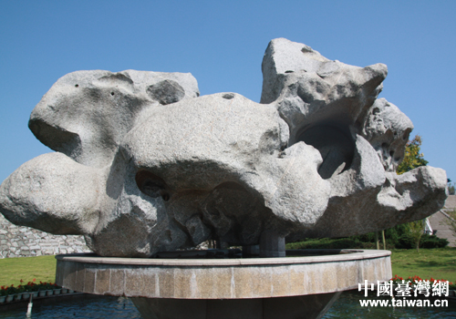 萬年江底奇石,重達20多噸,經地質專家考證距今已有8億年的歷史,是三峽建設者從二期圍堰基坑中挖出。(中國臺灣網 段雯婷 攝)