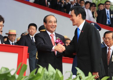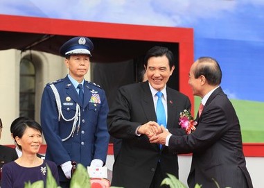 中國臺灣網10月10日消息 據臺灣媒體報道,“雙十慶”典禮上午11時45分圓滿結束,在大會司儀高呼恭送馬英九時,馬英九再度主動向擔任大會主席的臺灣“立法院長”王金平握手致意。