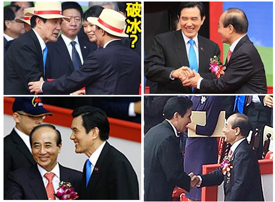 “雙十慶”馬王數度握手,熱情互動。(圖片來自臺媒)
