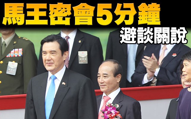馬英九辦公室發言人李佳霏說,馬王相處5分鐘,馬英九主動趨前握手,兩人談了天氣和運動等話題。