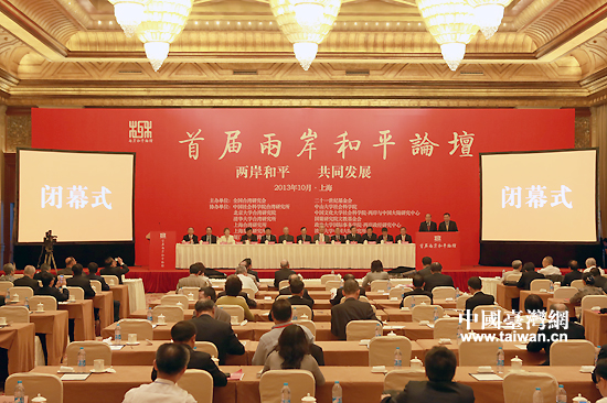 由全國臺灣研究會、臺灣二十一世紀(jì)基金會等14家兩岸民間團體和學(xué)術(shù)機構(gòu)共同舉辦的首屆兩岸和平論壇12日下午在上海閉幕。(中國臺灣網(wǎng) 田云鵬 攝)