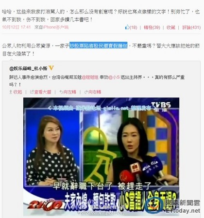 中國臺灣網(wǎng)10月13日消息 小S(徐熙娣)因夫婿許雅鈞與公公許慶祥涉嫌胖達(dá)人炒股案,11日被北檢傳喚作證。名嘴周玉蔻當(dāng)晚即在政論節(jié)目中轟小S“不配當(dāng)主持人”,引起不少S迷護(hù)航,之后她又在微博嗆聲:“公眾人物利用公眾資源,一家子炒股票陷害股民還賣假面包,不嚴(yán)重嗎?”周玉蔻甚至呼吁大陸禁播小S的節(jié)目。