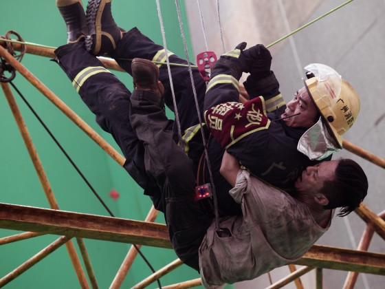 劉青云對《逃出生天》中一場吊車救援的戲印象深刻,覺得很危險。(臺媒圖)