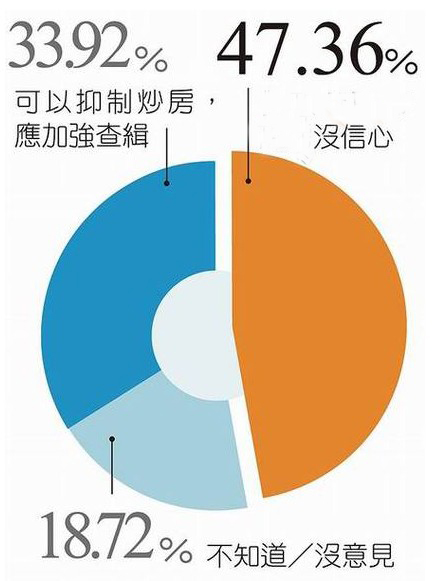但據(jù)臺媒一項最新民調(diào)結(jié)果顯示,有近5成民眾對臺當(dāng)局“財政部”取締炒房之舉沒信心。