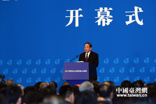 2013兩岸企業(yè)家紫金山峰會4日下午在江蘇南京開幕。中共中央政治局常委、全國政協(xié)主席俞正聲出席開幕式。(中國臺灣網(wǎng) 王偉 攝)