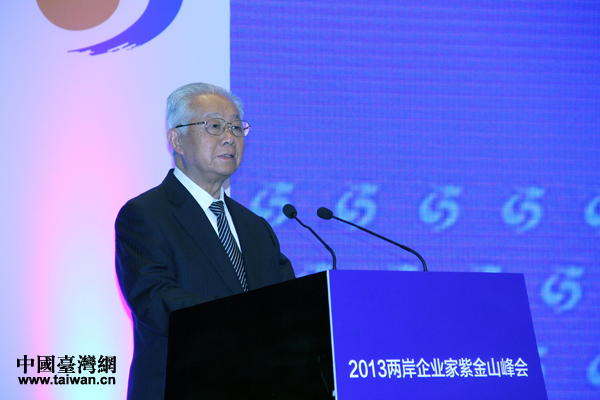 兩岸企業家峰會臺灣方面副理事會長江丙坤在閉幕式上作總結發言。(中國臺灣網 王偉 攝)