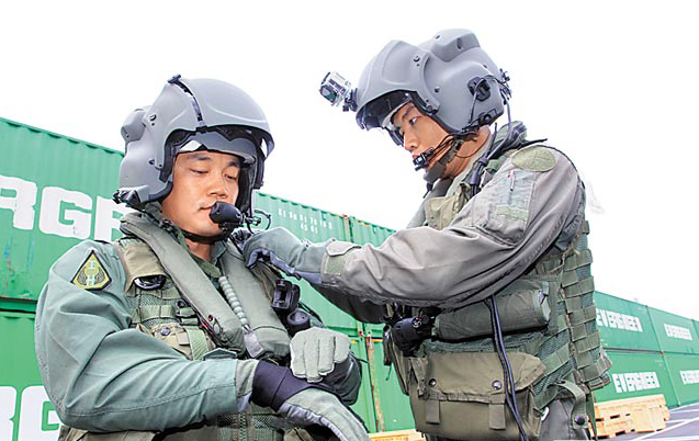 阿帕奇直升機起飛前,曾赴美受訓(xùn)的飛行員互相檢測裝備。(圖片來自臺媒)