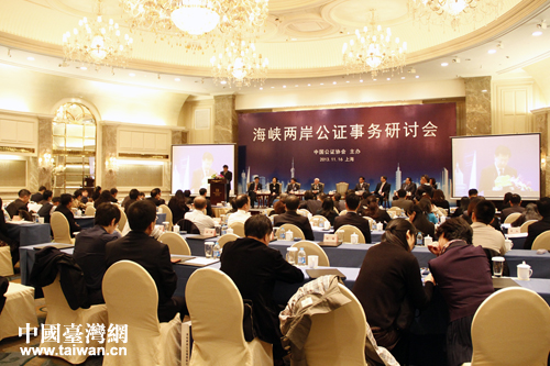 由中國公證協(xié)會(huì)主辦的以“兩岸繁榮與公證發(fā)展”為主題的海峽兩岸公證事務(wù)研討會(huì)11月16日在上海召開。(中國臺(tái)灣網(wǎng) 王怡然 攝)
