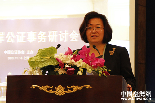 中國公證協(xié)會(huì)會(huì)長丁露致辭。(中國臺(tái)灣網(wǎng) 王怡然 攝)