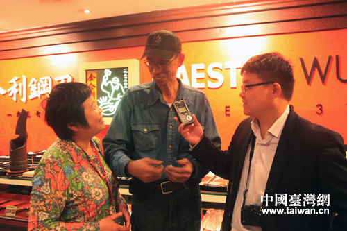 記者采訪金合利刀廠吳增棟師傅。(李建偉 攝)