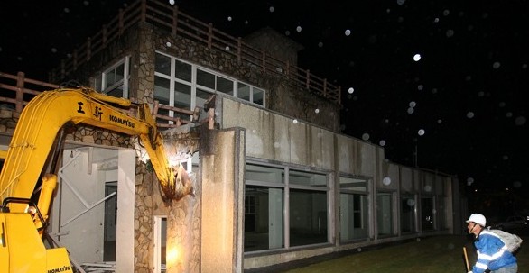 陽管處決定鐵腕強拆,今晨5時許天還沒亮,就集結30多名警力及1輛挖掘機,由陽管處長陳茂春帶隊,破門進入七七行館拆除,目前仍進行中。(中國臺灣網 高旭)