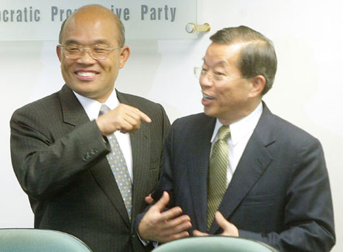 謝長(zhǎng)廷:柯文哲是否入黨,要考慮綠營(yíng)是不是能贏。(左為蘇貞昌,右為謝長(zhǎng)廷,網(wǎng)絡(luò)圖)