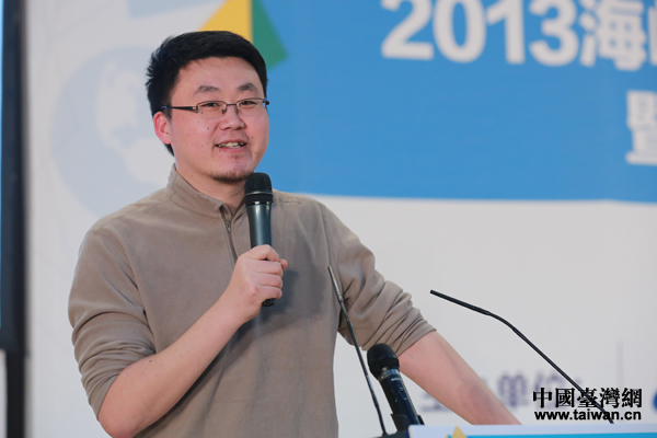 20日下午,由中國臺灣網(m.jt348.com)、海峽兩岸互聯網交流委員會、中華臺灣MIT正品推廣協會主辦的“2013海峽兩岸學生電子商務大講堂暨電商大賽頒獎典禮”在京舉行。圖為大陸靈狐科技首席戰略咨詢師費悅明作題為“電商時代、90后的時代”的演講。(中國臺灣網 于斯文 攝)
