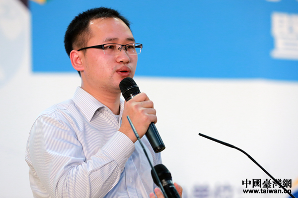 20日下午,由中國臺灣網(m.jt348.com)、海峽兩岸互聯網交流委員會、中華臺灣MIT正品推廣協會主辦的“2013海峽兩岸學生電子商務大講堂暨電商大賽頒獎典禮”在京舉行。圖為北京中關村創新研修學院特聘講師張遠昭作題為“誰不說俺家鄉好——家鄉特產的微信校園營銷”的演講。(中國臺灣網 于斯文 攝)