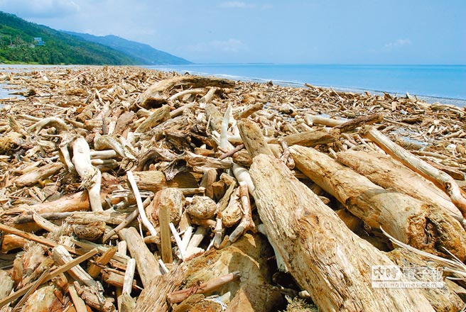大量漂流木堆積臺東海岸,猶如森林遺場。(圖片來自臺媒)
