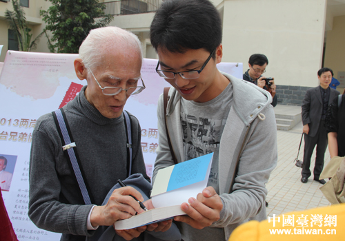余光中先生為學(xué)生簽名。(中國臺灣網(wǎng) 李瑞艷 攝)