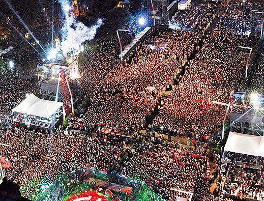 臺北市政府廣場前擠滿跨年人潮。(臺媒圖)