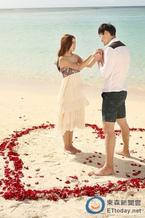 “小徐若瑄”李毓芬關(guān)島披婚紗。(臺(tái)媒圖)