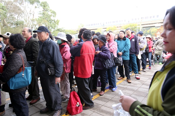 動物園門口清晨5、6時就出現搶看“圓仔”的頭香客,每個人都是全副武裝,包得緊緊就為了看“圓仔”。截至動物園9時開園前,排隊人龍已經延伸至捷運動物園站,約有500、600人。