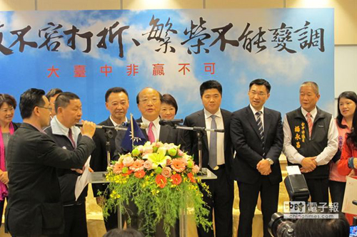 5日下午15時,胡志強召開記者會宣布參選連任臺中市長。來源:臺灣《中國時報》