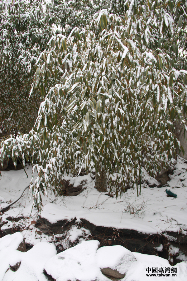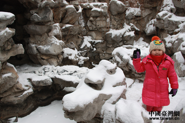 瀟湘館中的竹林,棵棵翠竹盡著盛裝。(中國臺灣網 王文英攝)在雪中興奮不已的小朋友。(中國臺灣網 王文英攝)