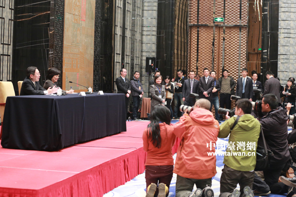 2月11日,臺灣陸委會負責人王郁琦在南京紫金山莊舉行記者會,說明“張王會”成果。(中國臺灣網 田云鵬 攝)