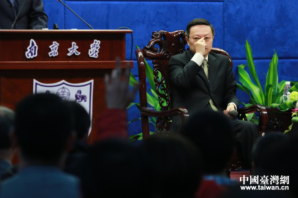 王郁琦在南京大學與部分師生座談并演講。(中國臺灣網 田云鵬 攝)