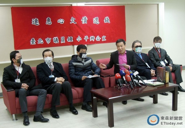 債權人在臺北市議員鐘小平陪同下召開記者會,指控國民黨榮譽主席連戰之女連惠心欠債不還。(圖片來自臺媒)