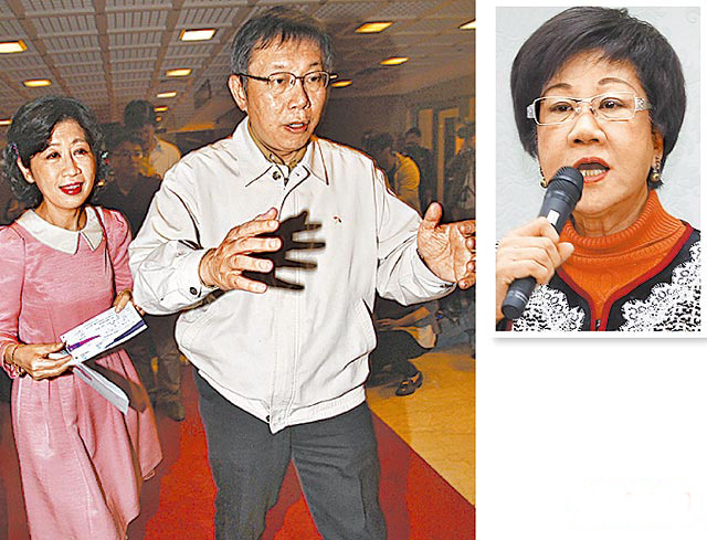 中國臺灣網2月24日消息 據臺灣媒體報道,綠營臺北市長之爭殺紅眼,呂秀蓮矛頭對準臺大醫(yī)師柯文哲,質疑、抹藍各種手段,只待把他整下馬。柯文哲昨與妻子陳佩琪現(xiàn)身臺灣音樂廳欣賞小提琴家徐錫隆的獨奏會,陳佩琪護夫心切,對于呂秀蓮的質疑,她指出,“說話前要拿出證據”,陳愈講愈激動,柯連忙打斷:“好啦,不要講了!”