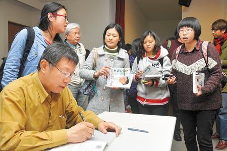 柯文哲(左一)昨日直言,從現在起至選前雙方將維持五五波,要打贏真的很困難。(圖片來自臺灣《中國時報》)