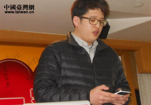 臺(tái)生會(huì)負(fù)責(zé)人葉晏其替不能到場(chǎng)的羅小妹讀感謝信。(中國(guó)臺(tái)灣網(wǎng) 林天泉 攝)