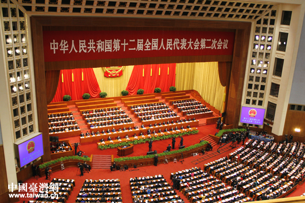 今天上午9時,第十二屆全國人民代表大會第二次會議在北京人民大會堂拉開帷幕。(中國臺灣網 高斯斯 攝)