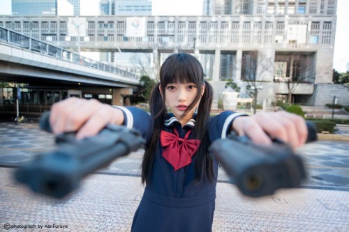 日本學(xué)生妹持槍萌照臺灣爆紅 海量美圖超越界(組圖)