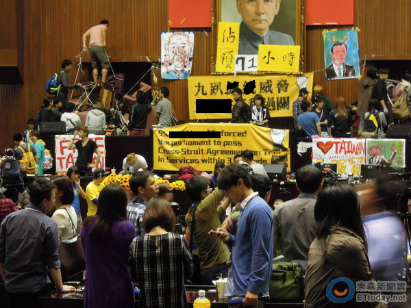 學生持續(xù)占領“立法院”議場,有學生畫“鹿茸像”諷馬英九。(圖片來自臺媒)