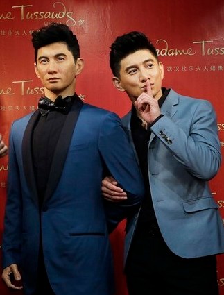 吳奇隆近日替自己的時裝蠟像揭幕,被問到是否希望和穿婚紗的劉詩詩蠟像站在一起,笑稱要看女友意見。(臺媒圖)