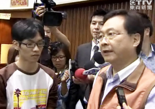 中國臺灣網3月25日消息 據臺灣“東森新聞”報道,反服貿學生占據“立法院”議場進入第8天出現轉圜,馬英九25日釋出善意,邀請學生代表對談《兩岸服務貿易協議》,學運領袖林飛帆也說,同意不預設立場下和馬談話,官方與學生僵持氣氛趨緩,國民黨籍“立委”紀國棟下午進入議場,請大家吃棒冰“消消火氣”。