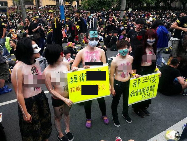 5女裸上身反服貿引發網友口水戰(圖)