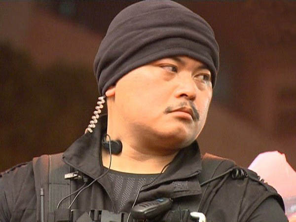 反服貿(mào)學(xué)運(yùn)領(lǐng)袖身邊的保鏢全副武裝,成員都有EMT證照。(臺(tái)媒圖)