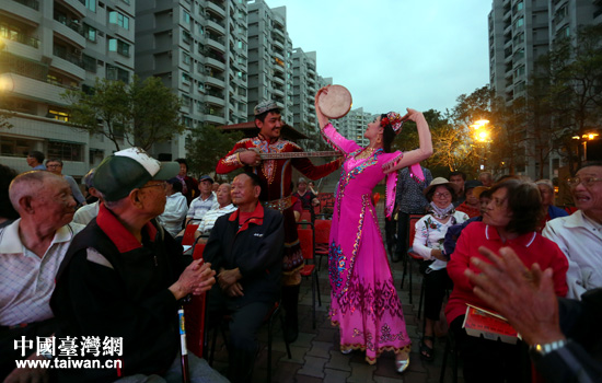 新疆歌舞團與社區觀眾親切互動。(中國臺灣網 高斯斯 攝)