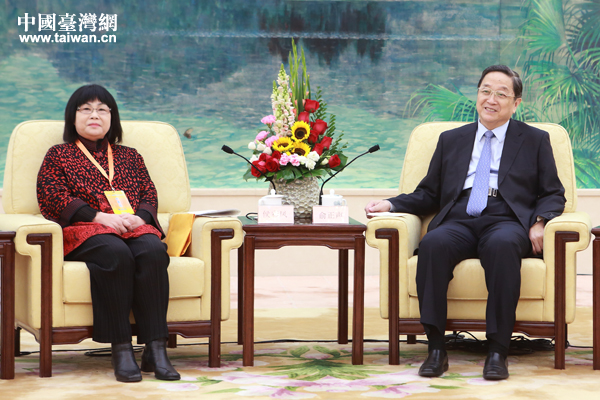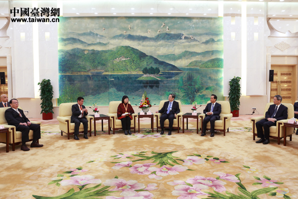 16日上午,俞正聲在北京人民大會堂會見了出席“2014海峽兩岸工會論壇”的臺灣工會界代表。圖左為海峽兩岸勞工發(fā)展交流協(xié)會理事長侯彩鳳 。(中國臺灣網(wǎng) 于斯文 攝)