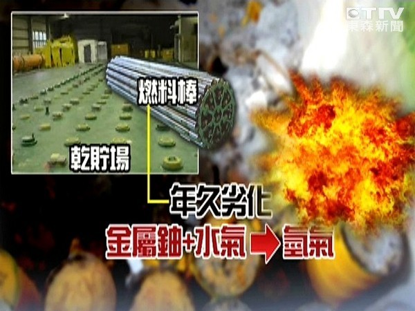 臺灣發(fā)展核武曝光后,在美方強(qiáng)烈要求下,當(dāng)時不只反應(yīng)器,所有用來提煉核武原料的燃料棒也準(zhǔn)備一并運(yùn)回美國。處理過程中因部分燃料棒護(hù)套年久劣化,燃料棒中的金屬鈾跟水氣經(jīng)過擦撞產(chǎn)生氫氣,6度引發(fā)氫爆。雖然之后灌漿封閉實驗室,但氫爆后放射性物質(zhì)已流到核研所下方土地。